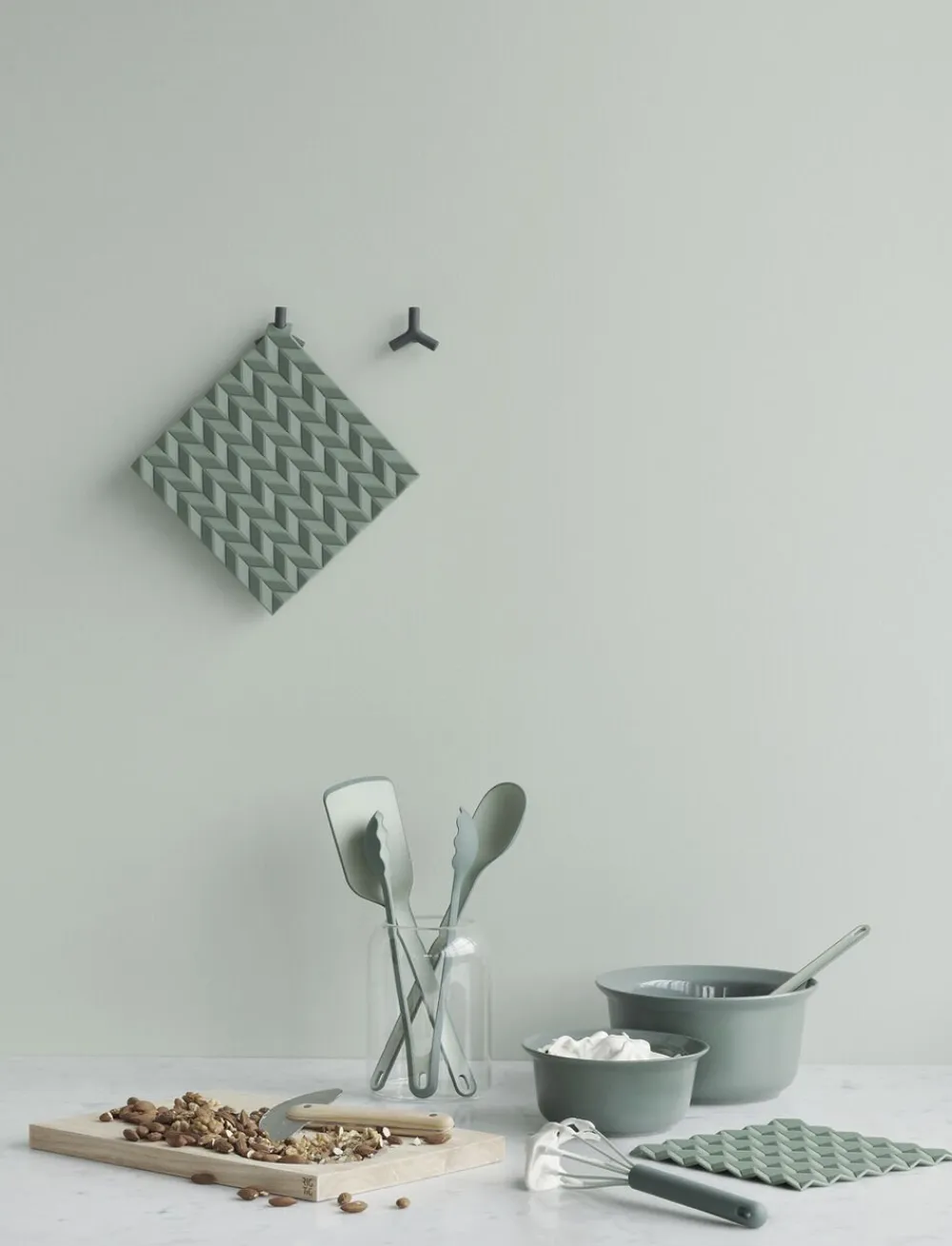 HOLD-ON er moderne grydelapper og bordskånere i ét. De er designet af Søren Refsgaard, der har ladet sig inspirere af den japanske origami foldeteknik. HOLD-ON grydelapper er fremstillet i silikone, der tåler op til 230 °C varme. Undgå at brænde fingrene grydelappernes struktur sikrer et godt greb om gryderne, og så er de endda mere varmeisolerende end konventionelle stofgrydelapper. Giv dem en tur i opvaskemaskinen, hvis de er blevet fedtede.