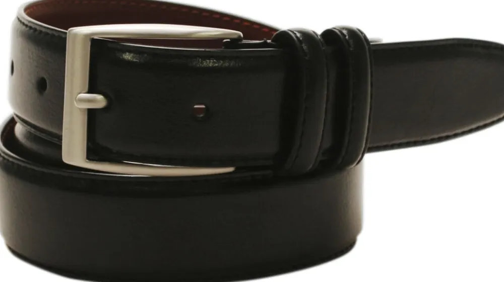 Klassisk herrebælte i læder med stikning fra SADDLER. 35mm bredt med spænde i børstet sølvfinish. Egner sig til både business, jeans og casual brug. Bæltelængden er målt fra bæltespændet til midterste af de 5 huller.