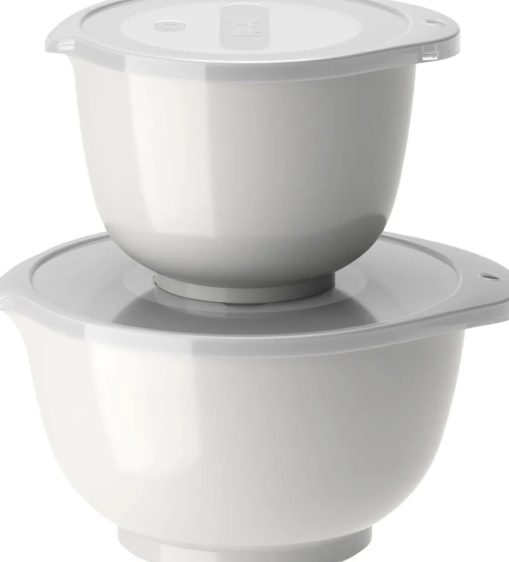Margrethe røreskålesæt fra Rosti i 2 af de mest anvendte størrelser. Sættet indeholder 1,5 + 3 liter Margrethe-skåle med tilhørende låg. Margrethe-skålen er den klassiske røreskål med det gode greb, den praktiske hældetud og den skridsikre bundring. Den nye version af Margrethe-skålen er fremstillet i Durostima®, et genanvendeligt plastmateriale. Skålen er nu endnu stærkere og mere brudsikker, og med det nye materiale kan den også tåle mikroovn og fryser. Margrethe-skålen er velegnet til såvel tilberedning som servering, og tilkøbes der låg, er røreskålen omdannet til en praktisk opbevaringsskål.