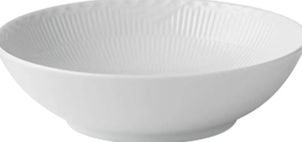 Slutningen af det 19. århundrede var en periode med udvikling og vækst generelt, hvad angår Royal Copenhagens porcelæn. På det tidspunkt redesignede den kunstneriske direktør det Musselmalede mønster og introducerede flere nye tiltag, herunder Hvid Halvblonde. Det Riflede design havde fået tildelt en elegant halvblonde langs kanten for at give stellet et romantisk udtryk. Dekorativt, men simpelt. Hver eneste steldel er glaseret i hånden. Sødt og yndefuldt.