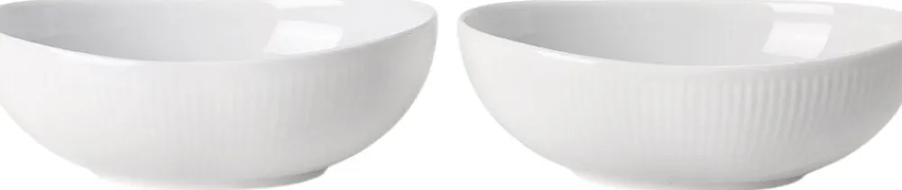 Med sin ovale form og let forhøjede kanter bringer den Hvid Riflet ovale skål lidt ekstra med sit design. Ideel til kimchi, enhver form for salat eller pastaservering. Den leveres i et sæt, så det er nemt at dække bordet til to.