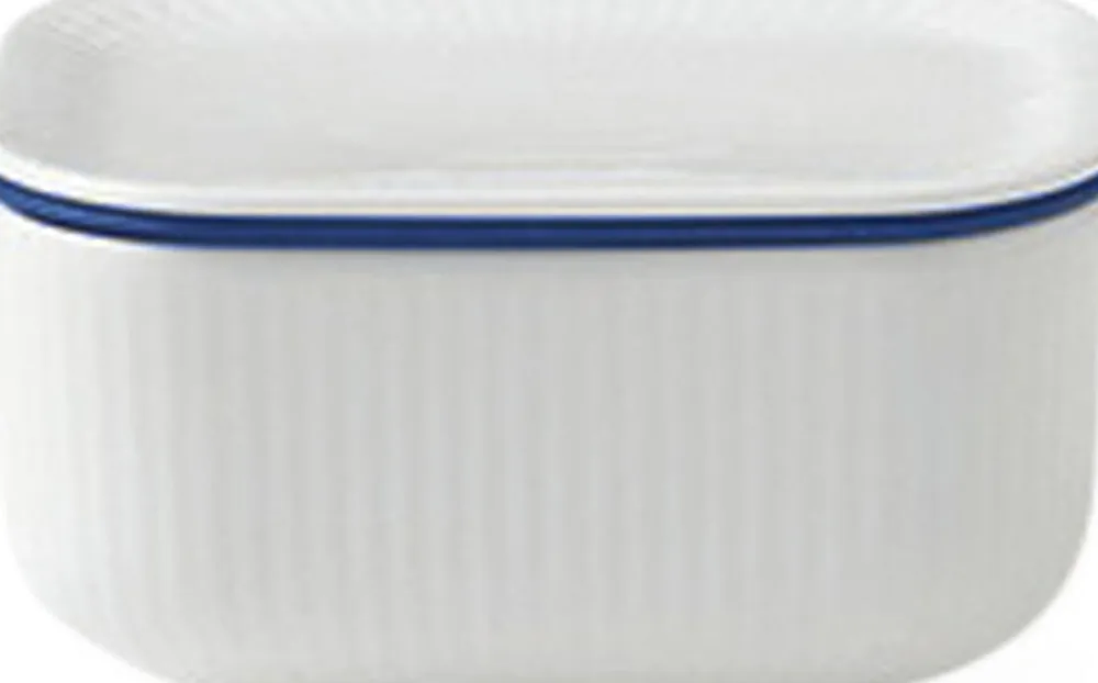 Det hvid riflet spisestel blev designet i d. 19. århundrede. Det er elegant og iøjenfaldende, og gør sig godt, både til hverdag og festlige lejligheder.