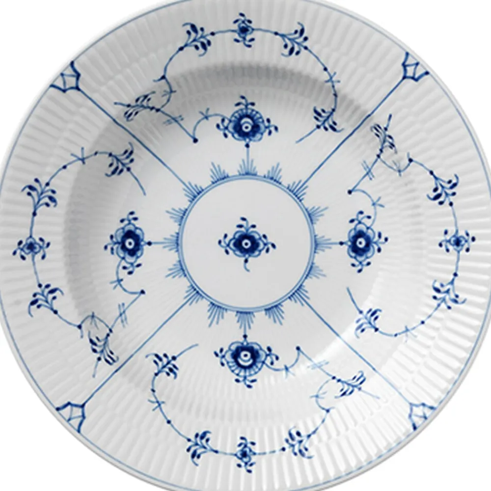Musselmalet Riflet fascinerer med sin klassiske alsidighed. Den yndefulde dekoration fremhæver de delikate former og det fine håndværk, der ligger bag hver steldel. Musselmalet Riflet er et tidløst stel
