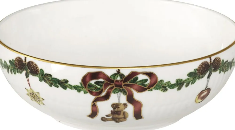 Skålen er oplagt til servering af nødder, frugt eller som morgenmadsskål. Skålen er dekoreret med et udvalg af juledekorationer som inkluderer en bamse og småkager