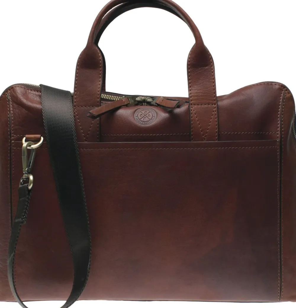 Computermappe model Gustav fra SADDLER. Produceret i højkvalitets bøffellæder. Indvendigt rum til 13-15″ PC, to stiklommer og en lynlåslomme. Udvendigt lomme med smart magnetlukning. Justerbar og aftagelig rem i textil. Bæredygtigt produceret.