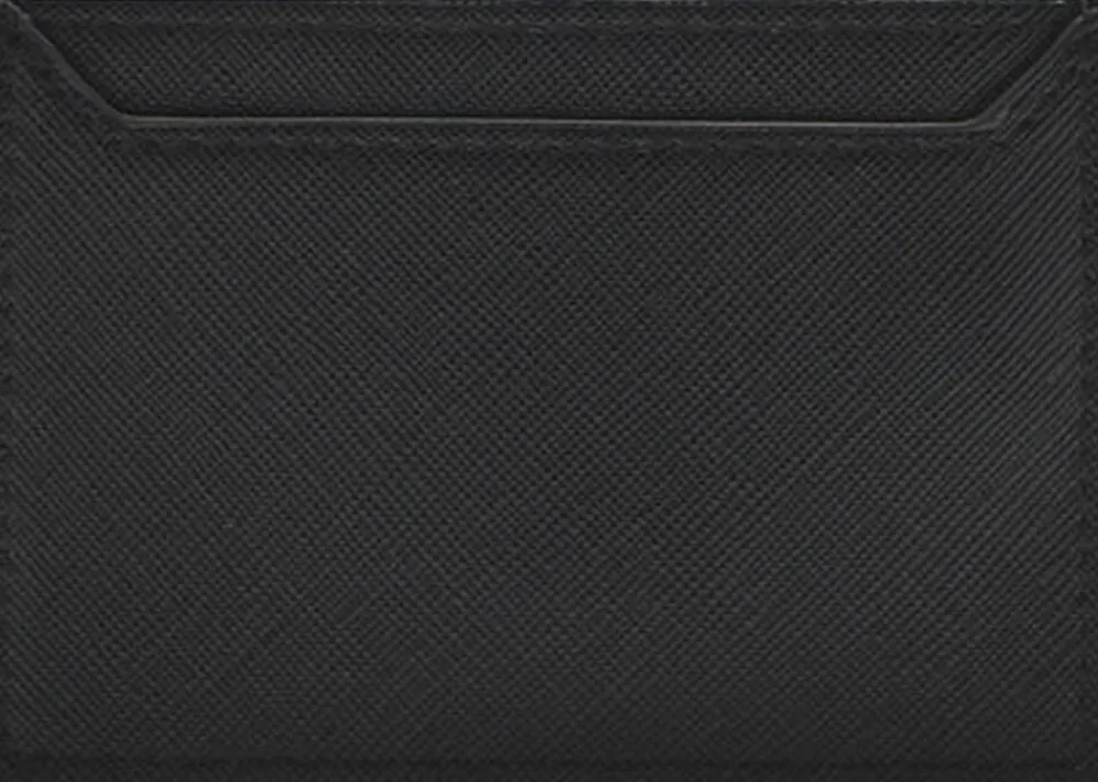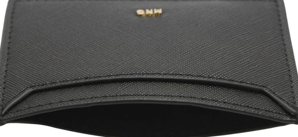 Faux-saffianolæder, små, flere kortpladser, ulukket, præget logo, dekorative sømme.