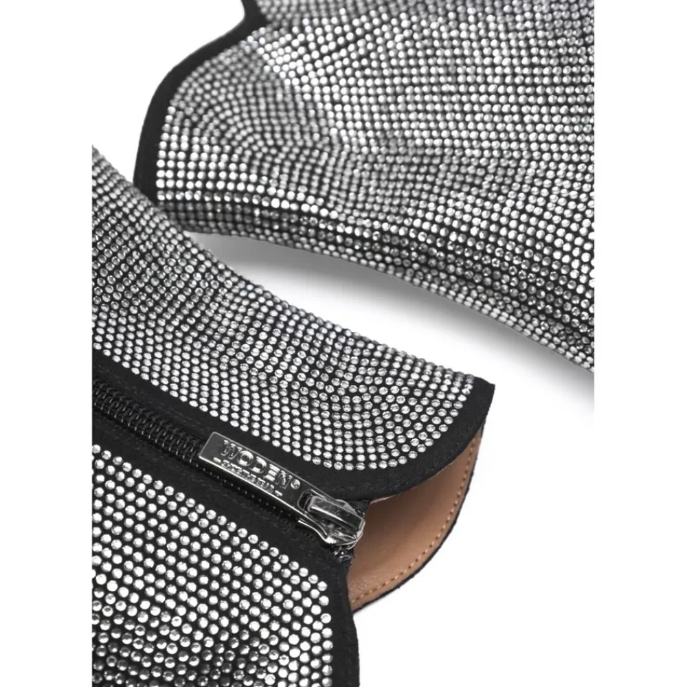 Glitrende glamour. Saga Zip Crystal er fremstillet af mikrofiber, udsmykket med blændende rhinsten, der fanger lyset i hver en krog og har en upcyclet fiskelæders detalje med ASC-certificering. WODENs Natural Soft Technology sikrer optimal komfort og støtte. – Overdel: 100 % mikrofiber med krystalsten – Ydersål: slidstærk tunit med Recycled – Hælhøjde: 5 cm – Skafthøjde: 12 cm – Skaftbredde: 12 cm – Detaljer i fiskelæder med ASC-certificering – WODEN Natural Soft Technology TM