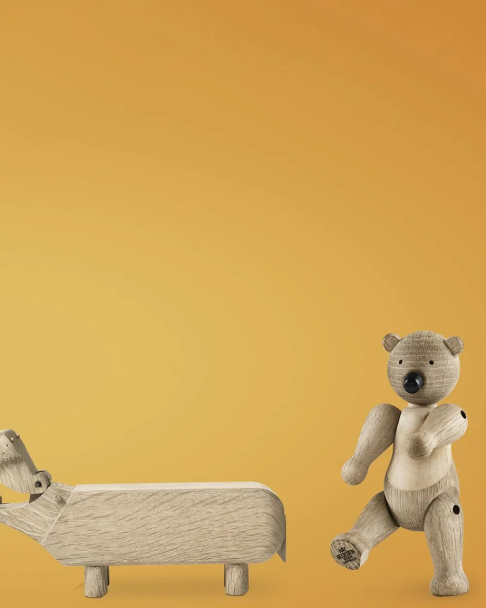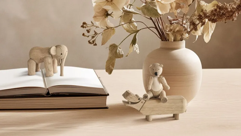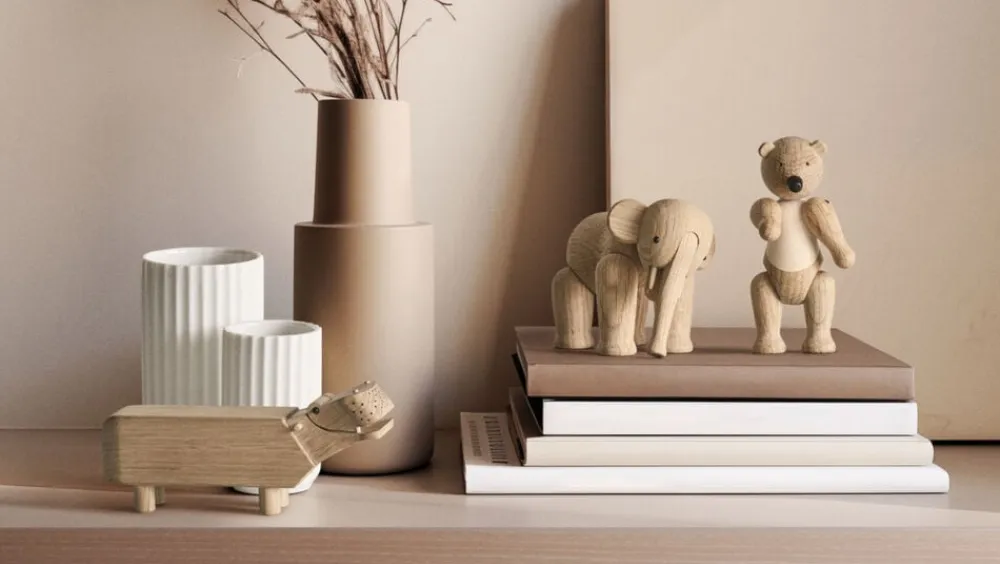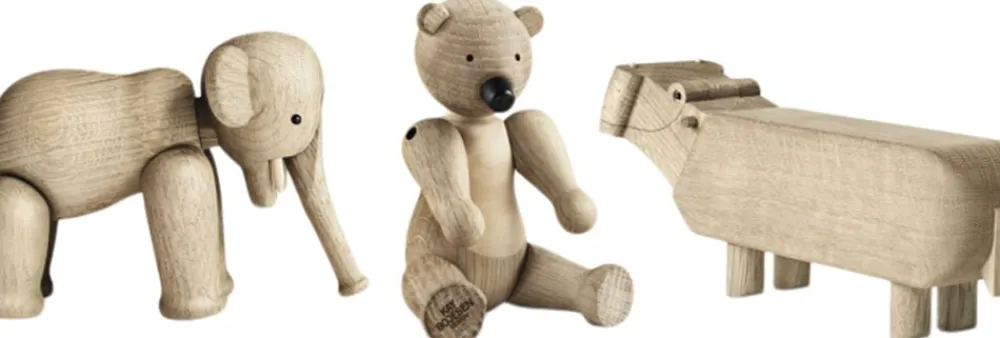 Store ikoner. Små størrelser. Under overskriften Liliput kan du nu skabe originale fortællinger i træ med tre af Kay Bojesens berømte træfigurer i en endnu mindre ministørrelse, hvor de smilende linjer i de små miniatureudgaver slet ikke kan undgå at få de helt store smil frem hos alle, der elsker klassisk dansk design. Mød Bjørnen på 9,5 cm, Elefanten på 7,5 cm og Flodhesten på bare 6 cm i højden. Liliput Bjørnen står ligesom sine større søskende klar med sine karakteristiske åbne arme og venlige udtryk. Og selvom den er lille, så kan Liliput Bjørnen stadig både dreje hovedet og bevæge armene, så du kan stille, sætte eller lægge den, nøjagtig som du ønsker. Også Elefanten med sin lange snabel og søde ører har i Liliput-versionen samme indbydende runde form som originalen fra begyndelsen af 50erne, hvor Kay Bojesens elefantfigur kom til verden på Kunsthåndværkets Forårsudstilling. Flodhesten blev født i 1955 som et muntert indslag til at holde styr på blyanten på skrivebordet, og den vil stadig skabe smil og stil som Liliput på kontoret eller på børneværelset. Alle Liliput-dyrene er fremstillet i egetræ. Liliput Bjørnen har desuden detaljer i ahorn, der er med til at understrege Bjørnens bløde formsprog. Dyrenes enkeltdele er drejet, slebet, pudset og poleret, så de både ser smukke ud og føles rare at røre ved. Selvom dyrene er blevet mindre, er det store håndværksmæssige arbejde bag hver enkel Liliput-figur det samme som altid, og den høje kvalitet i materialer, udformning og finish lyser ud af de tre små venner, der i denne unikke sampak med alle Liliput-figurerne er den helt oplagte gaveide til alle, der sætter pris på original dansk formgivning og design som Kay Bojesen er kendt for uanset om det er til det store jubilæum eller den lille børnefødselsdag. Stor, lille, mini eller Liliput så har Kay Bojesens familie af trædyr en helt særlig appel til både børn og voksne. En træfigur er ikke en gave, der bliver glemt, men bliver en kær ven, der flytter med gennem hele livet lige fra børneværelset til egen bolig i voksentiden. Noget som designikoner af en vis kaliber kan uden at miste relevans.