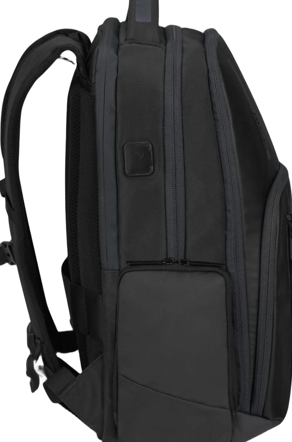 Computer rygsæk med plads til 14,1″ PC og 10,5″ tablet, både det indvendige og udvendige stof er lavet af genbrugsplast, flaskeholder i siden, frontlomme med lynlås, brystrem, ergonomiske stropper, rumindhold 20,5 l, vægt 1 kg. 2 års garanti.