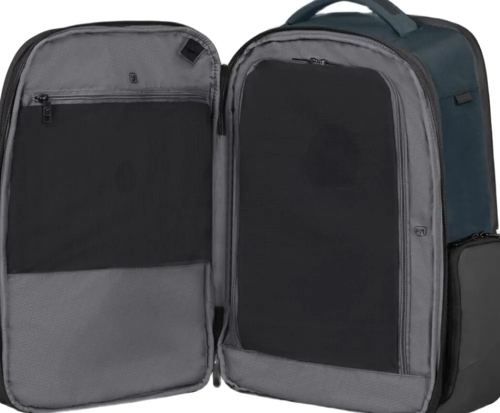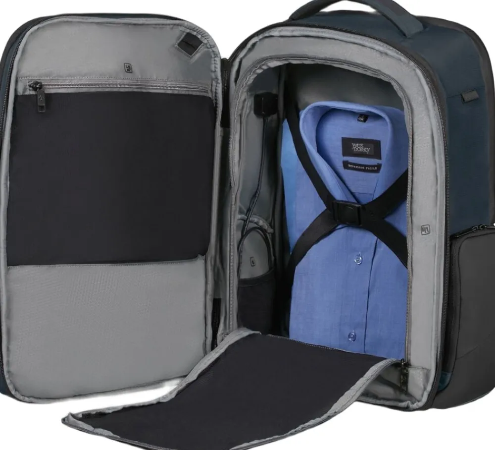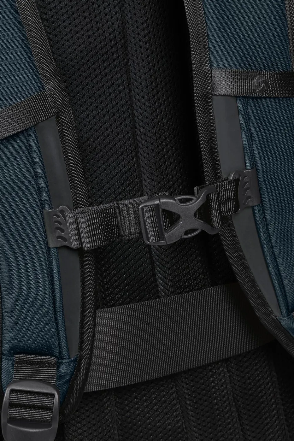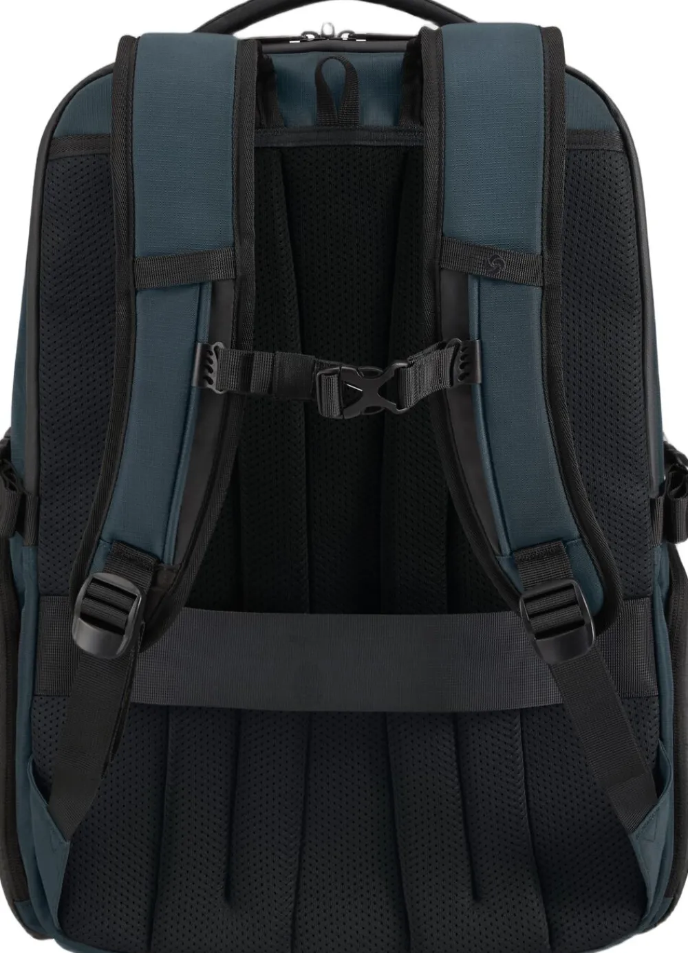 Computer rygsæk med plads til 17,3″ PC og 10,5″ tablet, både det indvendige og udvendige stof er lavet af genbrugsplast, tøjpose, flaskeholder i siden, frontlomme med lynlås, brystrem, ergonomiske stropper, rumindhold 30/35 l, vægt 1,3 kg. 2 års garanti.