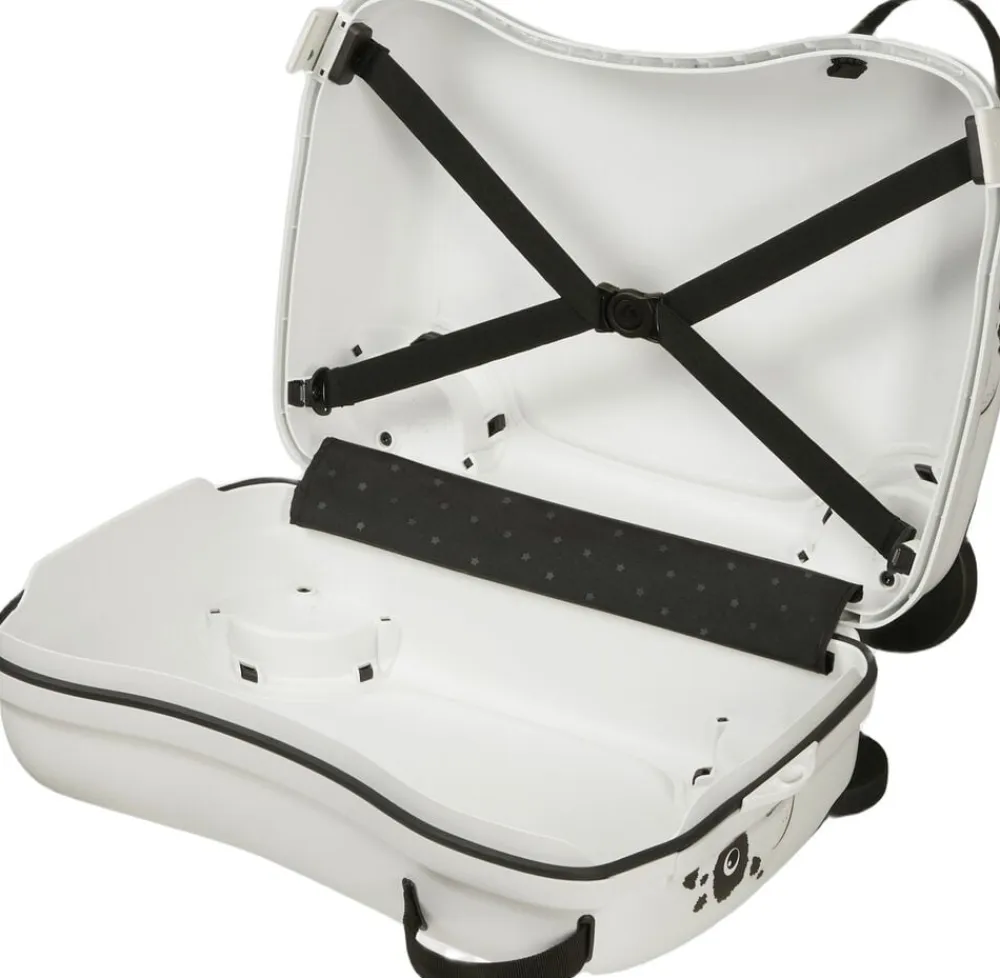 Dream2Go, er Samsonite’s kollektion af kufferter, som børn kan sidde og køre på, er perfekt til ferier, overnatninger og leg derhjemme. Skallen er lavet af min 70% genbrugt polypropylen, 2 punkts lås, aftagelig skulderrem, produceret i Europa, mål 52 x 38 x 21 cm. Vægt 2,1 kg, rumindhold 30 L, 5 års begrænset garanti.