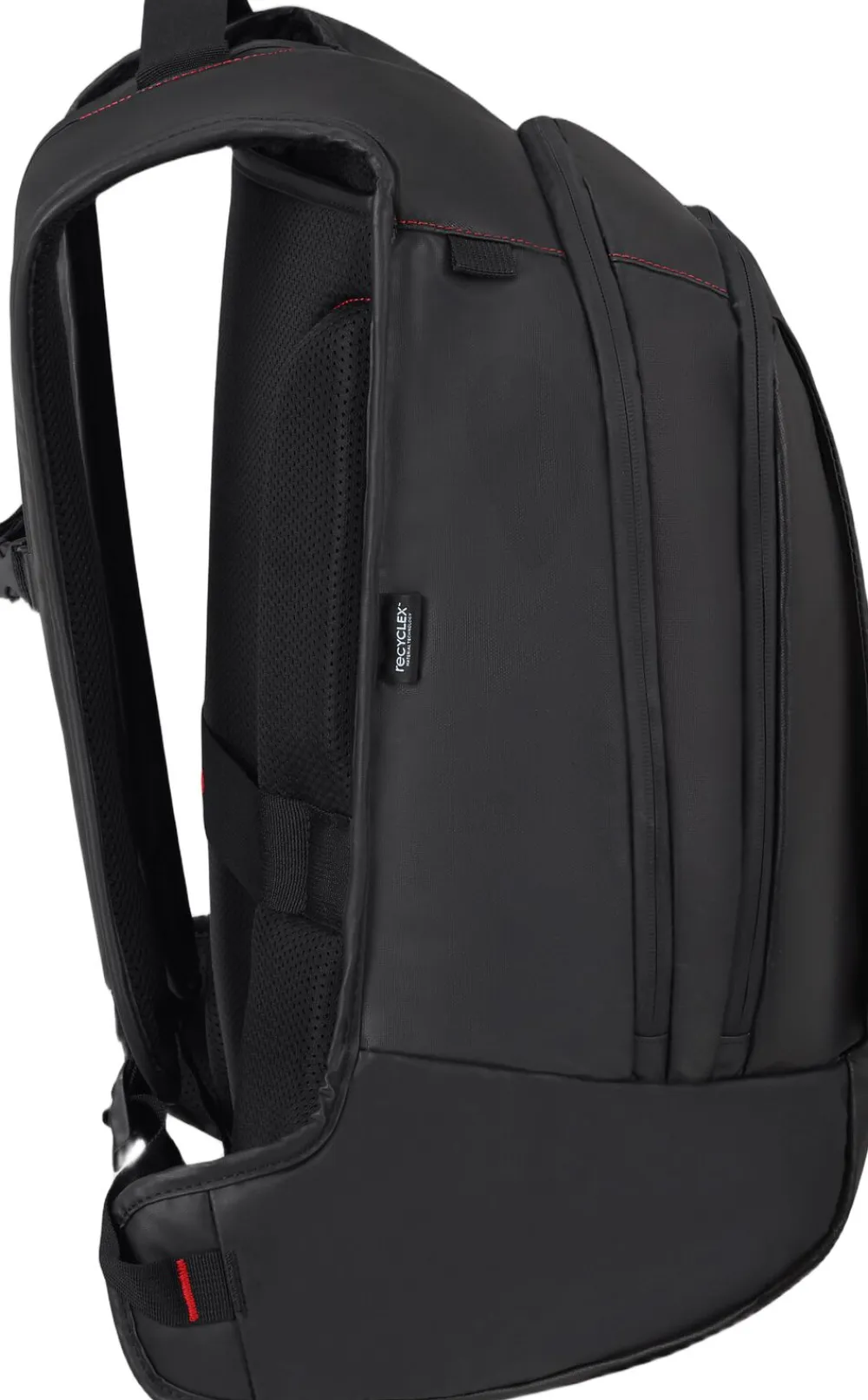 Rygsæk hvor både det udvendige og indvendige stof er lavet af genbrugt nylon og polyester, vandafvisende materiale, frontlomme med refleksdetaljer, ergonomiske stropper, brystrem, plads til 15,6″” pc og 10,5″” tablet, rumindhold 26 liter, vægt 1 kg.
