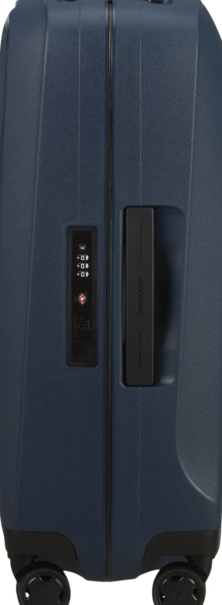 Kabinekuffert med 4 hjul, lavet af minimum 70% genbrugt polypropylen, stoffet indvendigt er lavet af genbrugte pet flasker,3 punkts TSA lås, dobbelt trollystativ, 2 aftagelige pakkeposer,2.6 kg,navneskilt,rumindhold 39 l, 5 års garanti