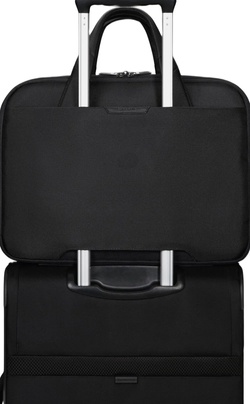 Computer taske i topkvalitet, lavet i balistisk nylon med skinddetaljer på håndtag, plads til 15,6″ PC og 10,5 ” tablet, indvendig stof lavet af genbrugsplast, skulderrem med foam, organisation i frontlomme, mulighed for udvidelse, smartsleeve funktion så den passer ovenpå din trolly, rumindhold 16/23 l, vægt 1,4 kg. 2 års garanti.