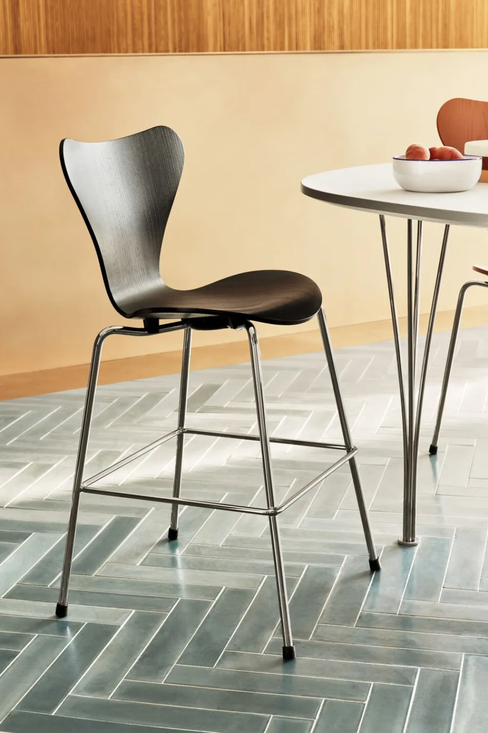 Gør plads til børnene ved bordet med den nye Serie 7 Junior stol. Denne høje børnestol passer perfekt ind ved siden af de klassiske Serie 7 stole.