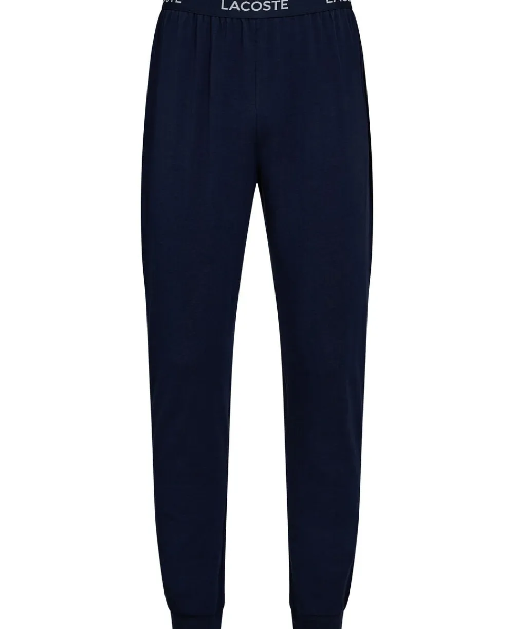 Natsæt fra Lacoste i den blødeste bomuldskvalitet med stretch. Sættet består af en t-shirt og et par bukser med en løs pasform. T-shirten har korte ærmer, rib i den runde halsudskæring samt et stort logoprint på fronten. Bukserne har en bred elastikkant med logo i taljen samt ribkant i benene. Et casual natsæt i den lækreste kvalitet.