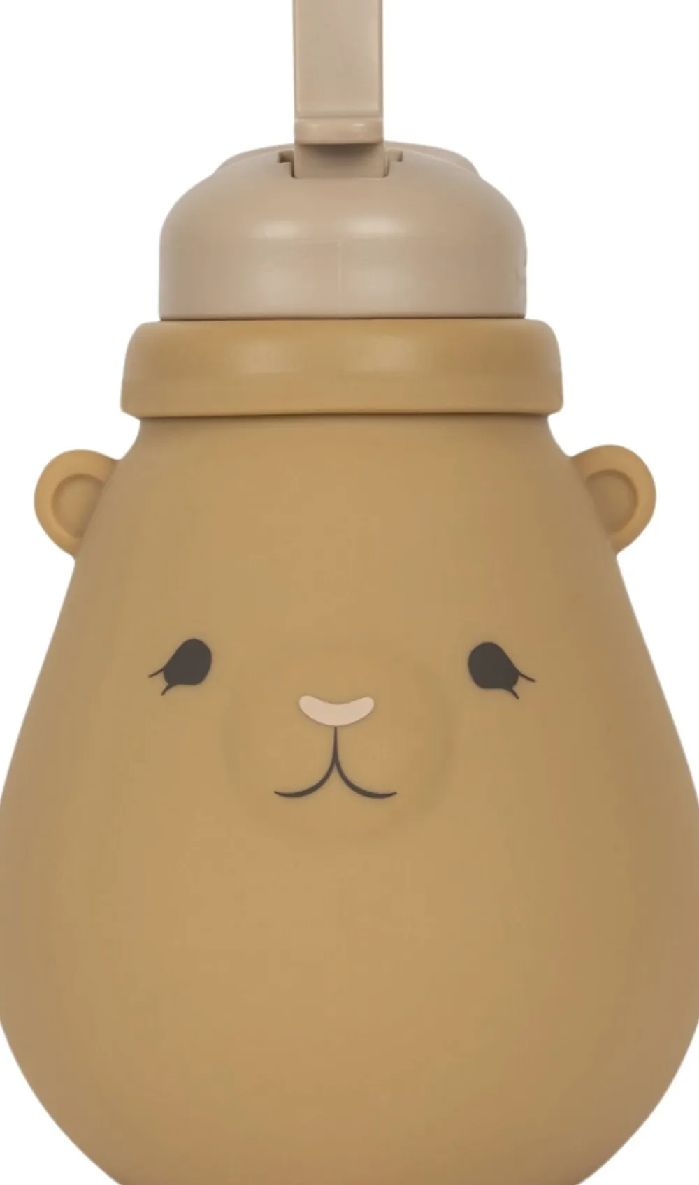 Teddy-formet drikkeflaske med låg af 100 % polypropylen og en flaske af 100 % silikone. Flasken tåler opvaskemaskine op til 100 °C og er mikrobølgeovnsikker med en temperatur på mellem -40 °C og 230 °C. Låget tåler også opvaskemaskine og mikrobølgeovn, men må ikke bruges til opvarmning eller kontakt med fødevarer over 70 °C. ADVARSEL! Langvarig sugning af væsker kan forårsage tandforfald. Kontrollér altid madens temperatur før fodring. Bortskaf flasken ved første tegn på beskadigelse eller svaghed. Fastgør aldrig til ledninger, bånd, snørebånd eller Løs dele af tøj, da det kan forårsage kvælning. Flasken har en kapacitet på 400 ml og er blevet testet og overholder EU-bestemmelserne vedrørende fødevarekontakt 10/2011 og 1935/2004 samt tyske LFGB §30 og 31. Velegnet til børn på 18 måneder og derover