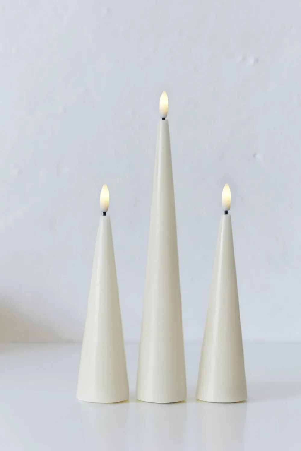 Sille keglelys med LED flamme. Sille serien er livagtig og med designet i ægte stearin, syner det som et originalt smukt lys.