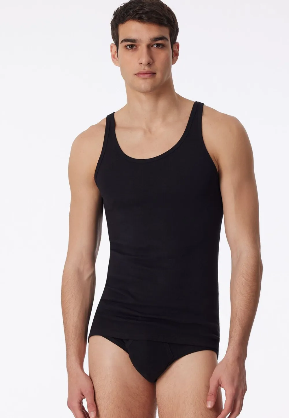 En ægte undertøjsoriginal: Denne sorte undertrøje fra SCHIESSER “Classics” -serien kombinerer behageligt, blødt materiale med bevist topkvalitet. Det fine ribmateriale i 100% superkæmmet bomuld af høj kvalitet føles umiskendeligt blødt mod Hud og giver optimal komfort uden generende sidesømme, sammen med den længere ryg. Ideel til Herre, der sætter pris på klassisk hverdagstøj med en perfekt pasform!