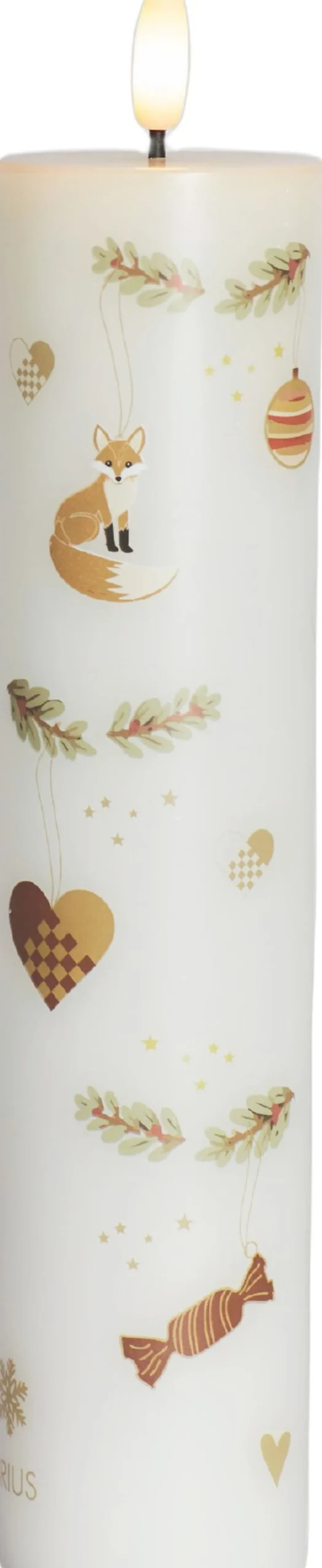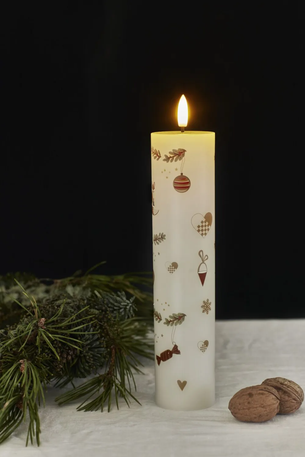 LED bloklys med julemotiv, 3D flammen lyser med et varmt hvidt lys