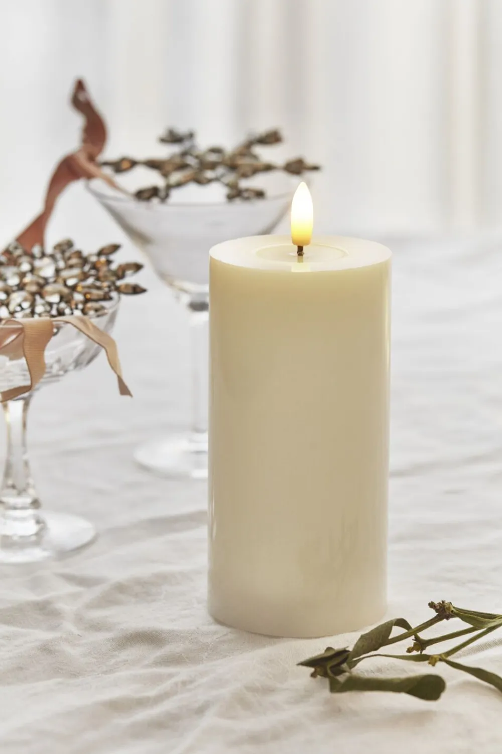 LED lak bloklys med 3D flamme der lyser med et varmt hvidt lys