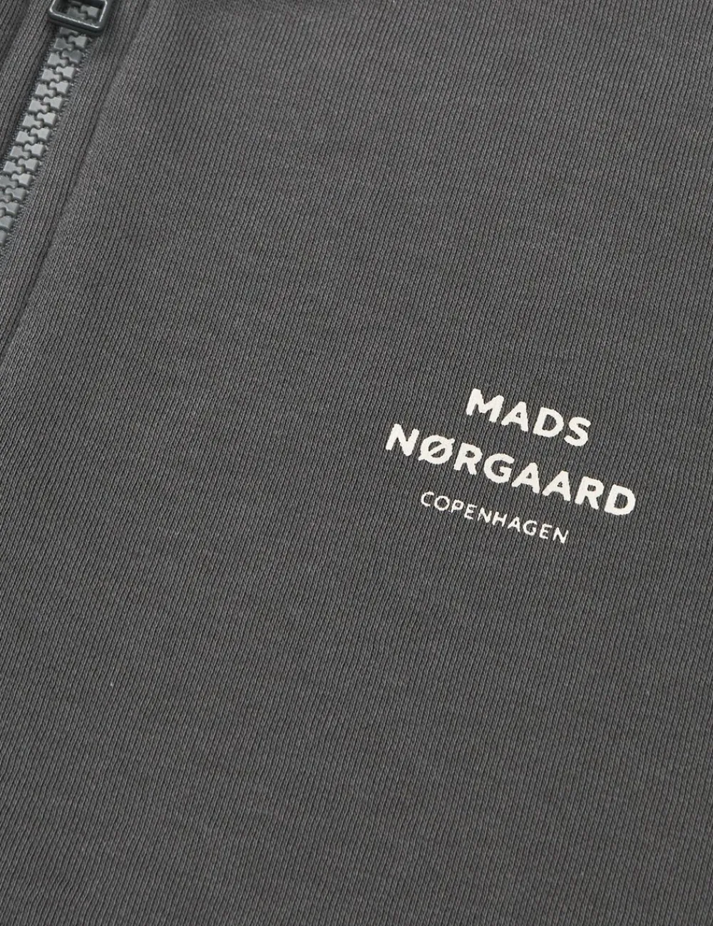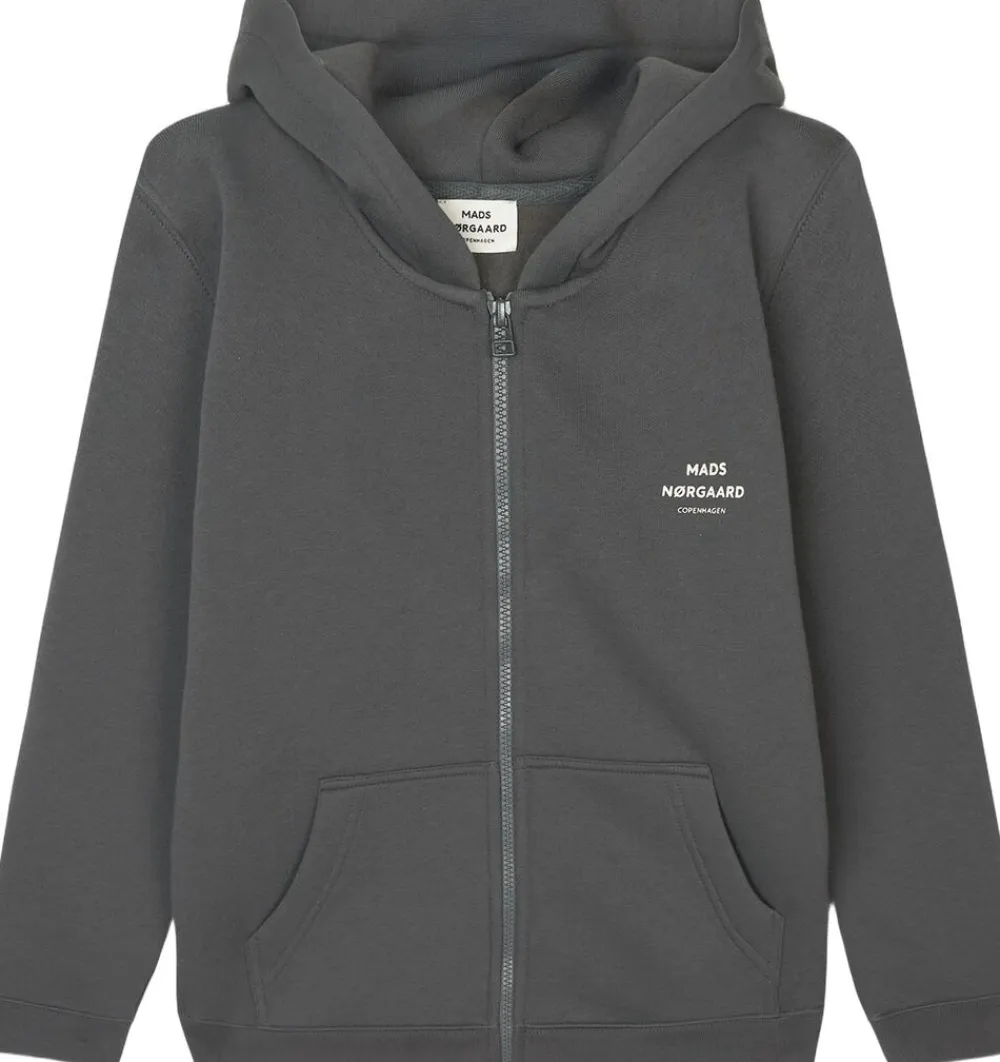 Blød hættetrøje i regular pasform med gennemgående lynlås, ribkanter, delt kængurulomme og logo printet på brystet