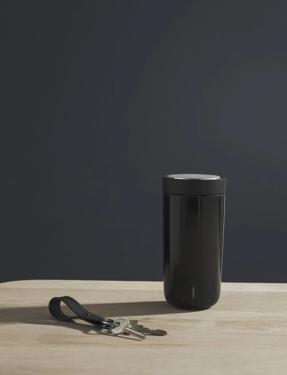 Nyd varme og kolde drikke, når du er på tur. To Go Click er den perfekte termokop, når du pendler til arbejde eller studie, går tur med vennerne eller barnevognen og ellers er on the go. To Go Click rejsekoppen i stål er lige dele smart design og funktionalitet. Kruset på 0,4 l. kan betjenes med én hånd ved et klik på toppen, og det er muligt at drikke fra det hele vejen rundt. Tryk igen og To Go Click er lukket. Det dobbeltvæggede termokrus er vakuumisoleret og vil holde din kaffe eller te varm i op til 4 timer – eller kold i 8 timer. Pas på miljøet og undgå engangskopper ved at medbringe din To Go Click kop.