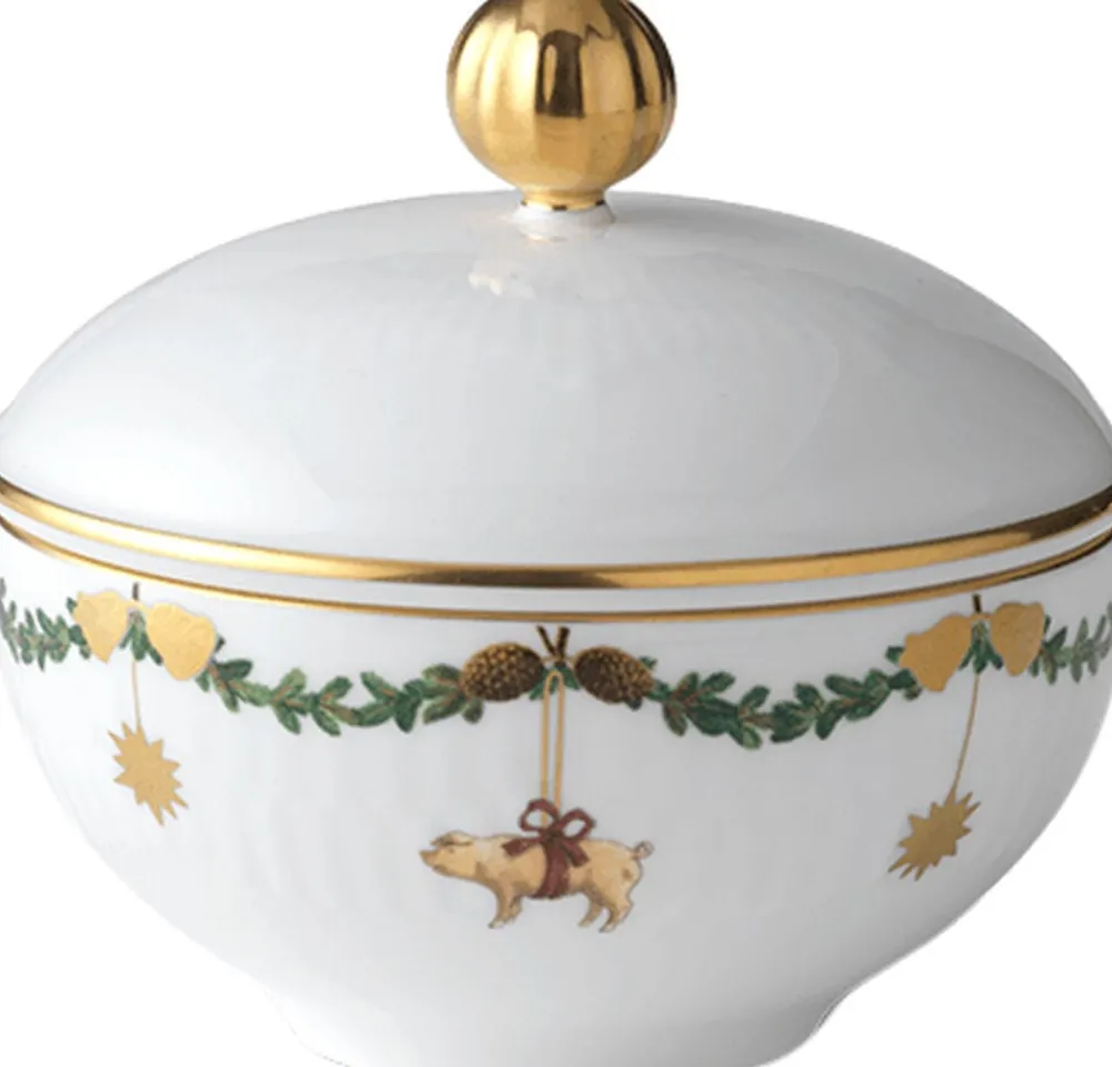 Blandt julens smukke traditioner hører julestellet fra Royal Copenhagen. På tallerkener, skåle og kopper snor granguirlanderne sig højtideligt, dekoreret med elegante silkesløjfer og det fineste pynt. Stjerne Riflet Jul skaber stemning og gør julen til noget helt særligt – generation efter generation. Hver eneste steldel er et smukt stykke julepynt i sig selv, og når bordet står dækket og lysene er tændt, så bliver det helt sikkert jul igen.