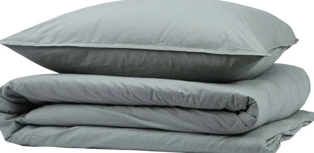 Stonewashed sengesæt fra Magasin du Nord Collection har et moderne design med kraftige dobbeltstikninger i kanterne og et vasket, let rustikt udtryk. Der følger to hovedpudebetræk med.