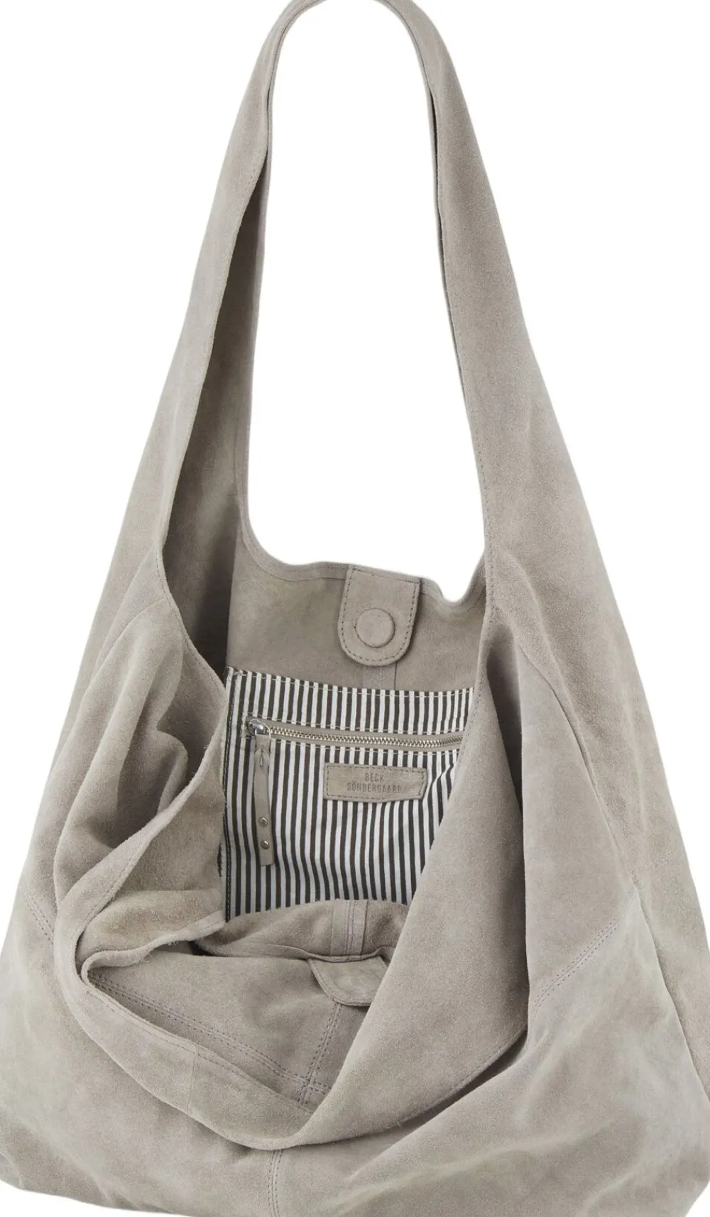 Suede Dalliea Bag designet af Becksöndergaard er en rummelig shopper taske, idealisk til hverdagsbrug. Den indeholder et stort rum, med en indvendig lynlåslomme, og lukker med en magnetisk knap. Den er designet i 100% ruskind og måler 40 x 40 cm. Tasken kan bæres både på skulderen eller i hånden. Obs: Vær opmærksom på, at ruskind er et naturmateriale der kan nulre af på andre materialer, men dette kan fjernes med en fnugfjerner.