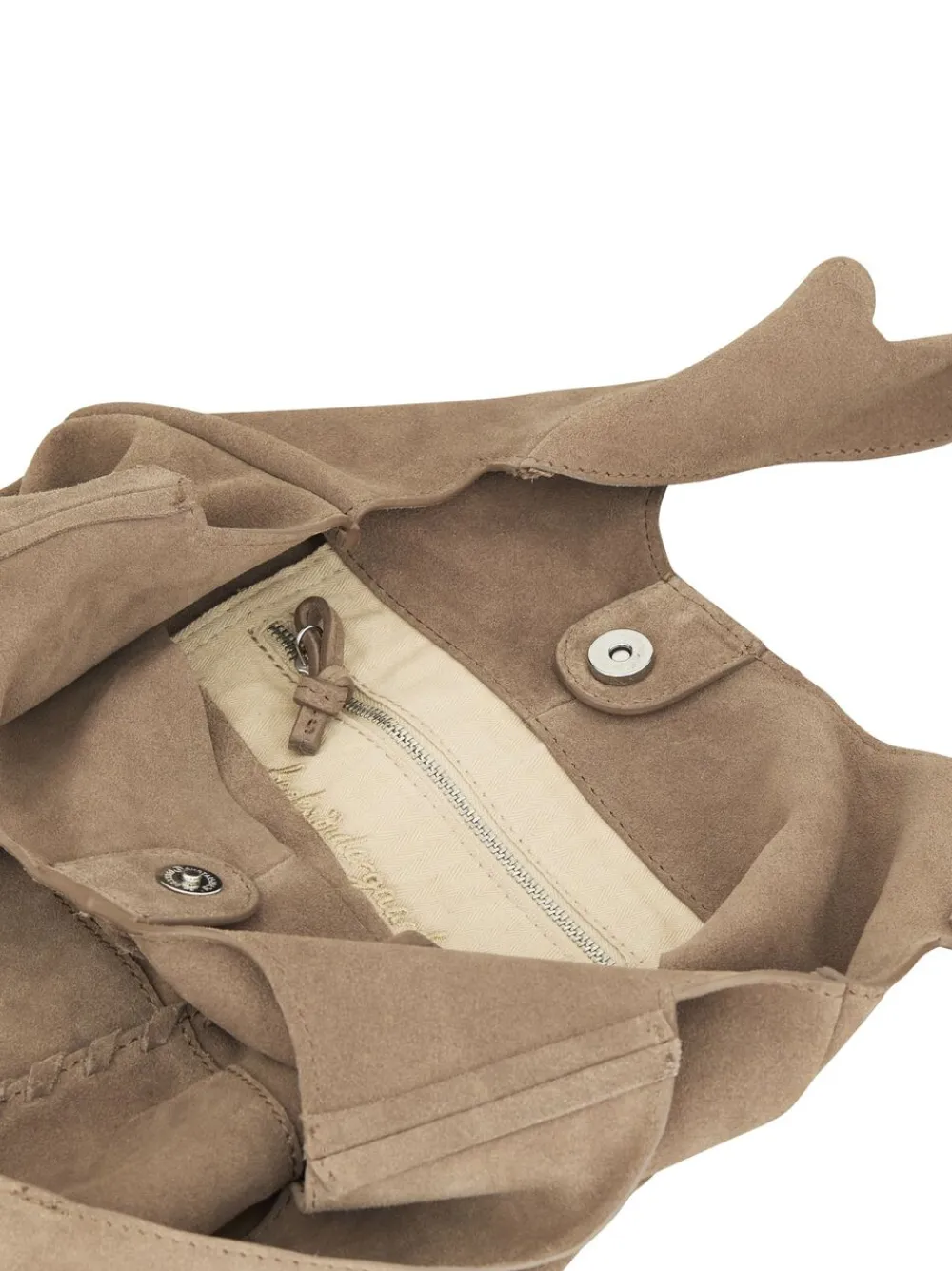 Suede Demi Bag designet af Becksöndergaard er en rummelig shopper taske, idealisk til hverdagsbrug. Den indeholder et stort rum, med en indvendig lynlåslomme, og lukker med en magnetisk knap. Den er designet i 100% ruskind og måler 32 x 38 cm. Tasken kan bæres både på skulderen eller i hånden. Obs: Vær opmærksom på, at ruskind er et naturmateriale der kan nulre af på andre materialer, men dette kan fjernes med en fnugfjerner.