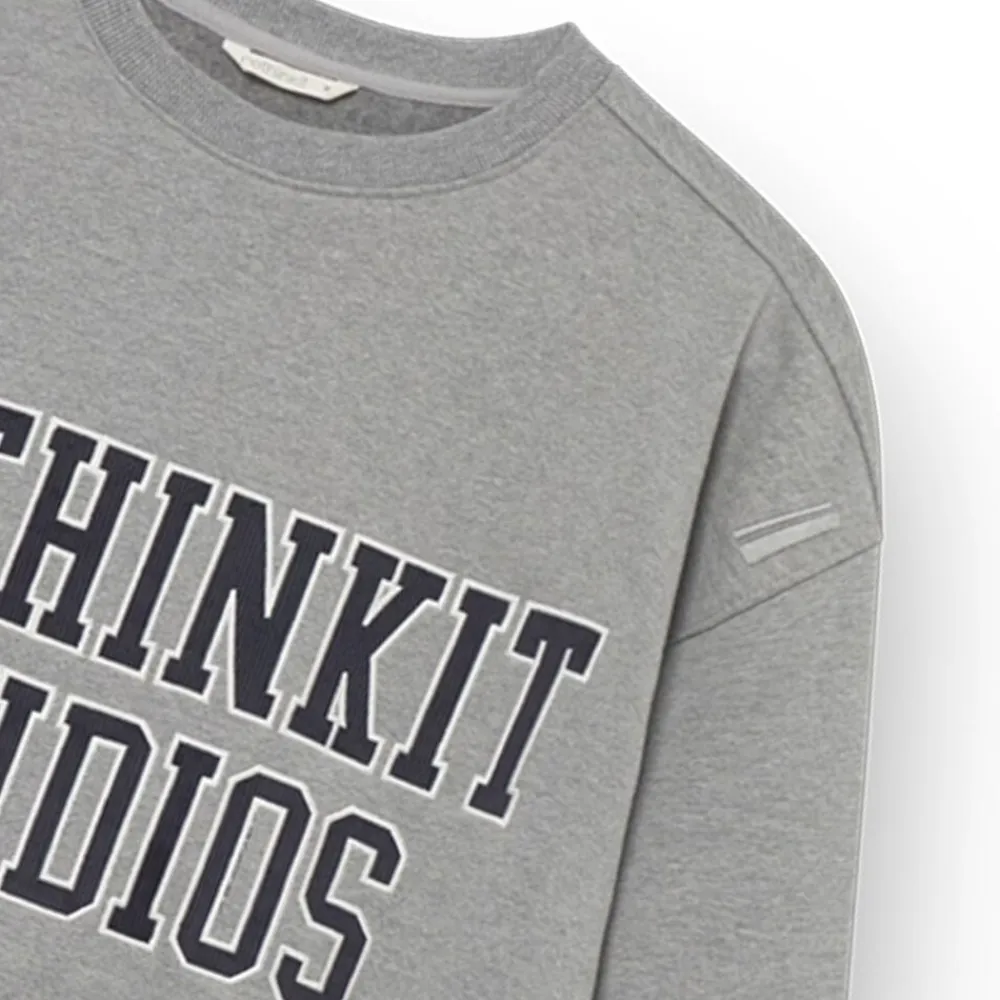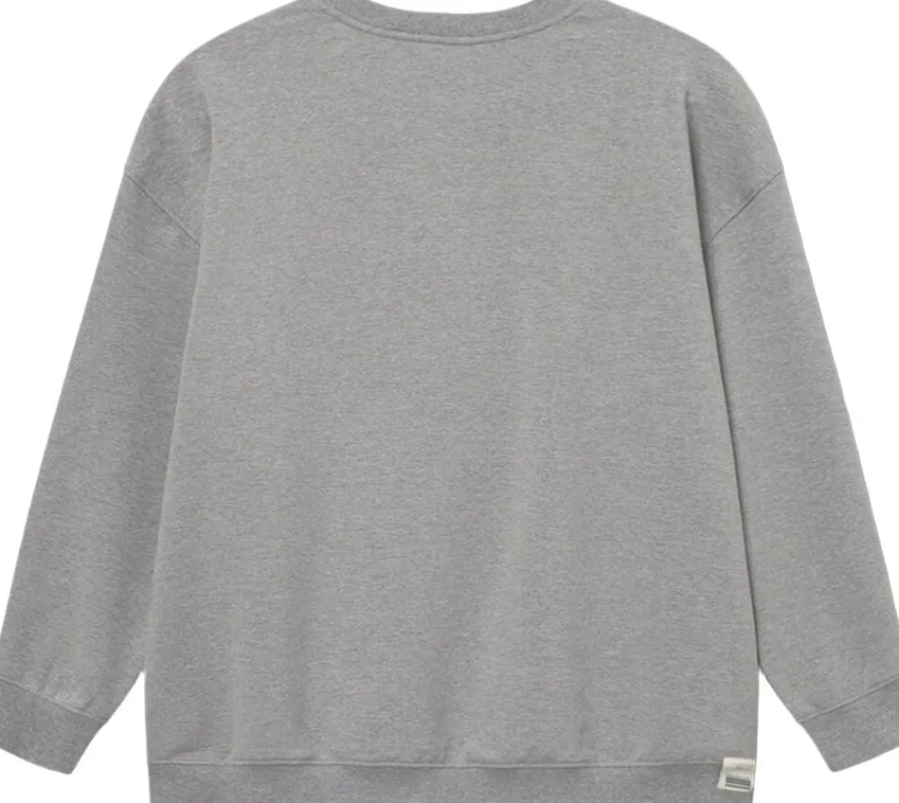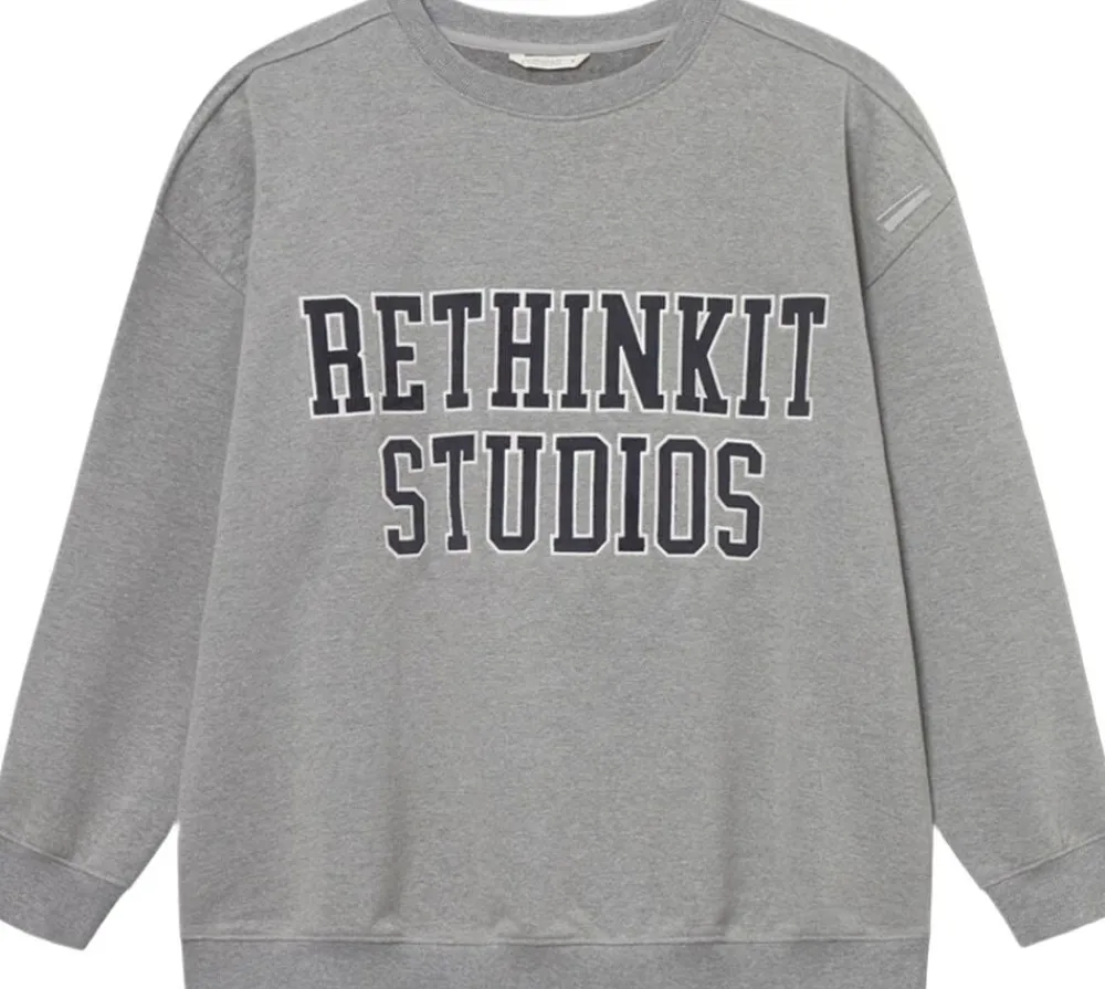 Pasform og stil – Oversized pasform – Detaljer med mellemlang talje Denne klassiske sweatshirt med rund hals har et iøjnefaldende Rethinkit-logo i en college-inspireret stil. Det store applikationslogo midtpå foran med bogstaver i fløjl og kontrastsyninger tilføjer tekstur og detaljer. Den bløde, børstede finish på indersiden giver ekstra varme og komfort, hvilket gør denne beklædningsgenstand både stilfuld og behagelig. Materialer – Blød, børstet inderside for ekstra varme – 100 % bomuld