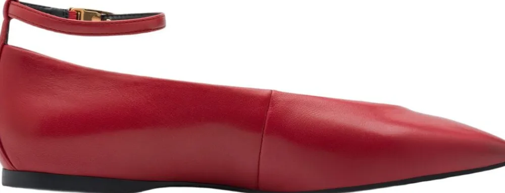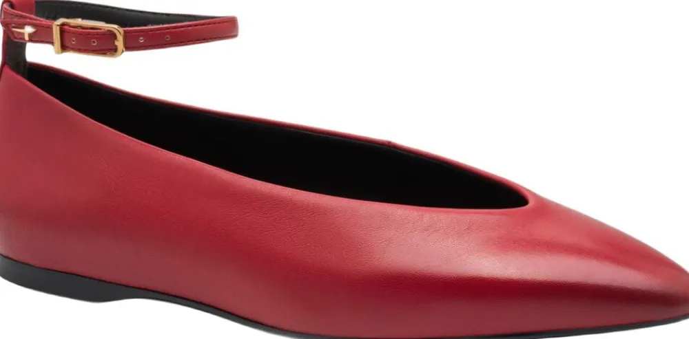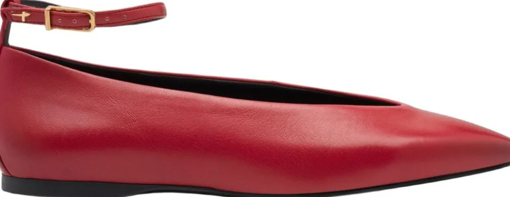 Flad spids ballerina med ankelrem i let glat sål og med Touch it effekt i dæksålen