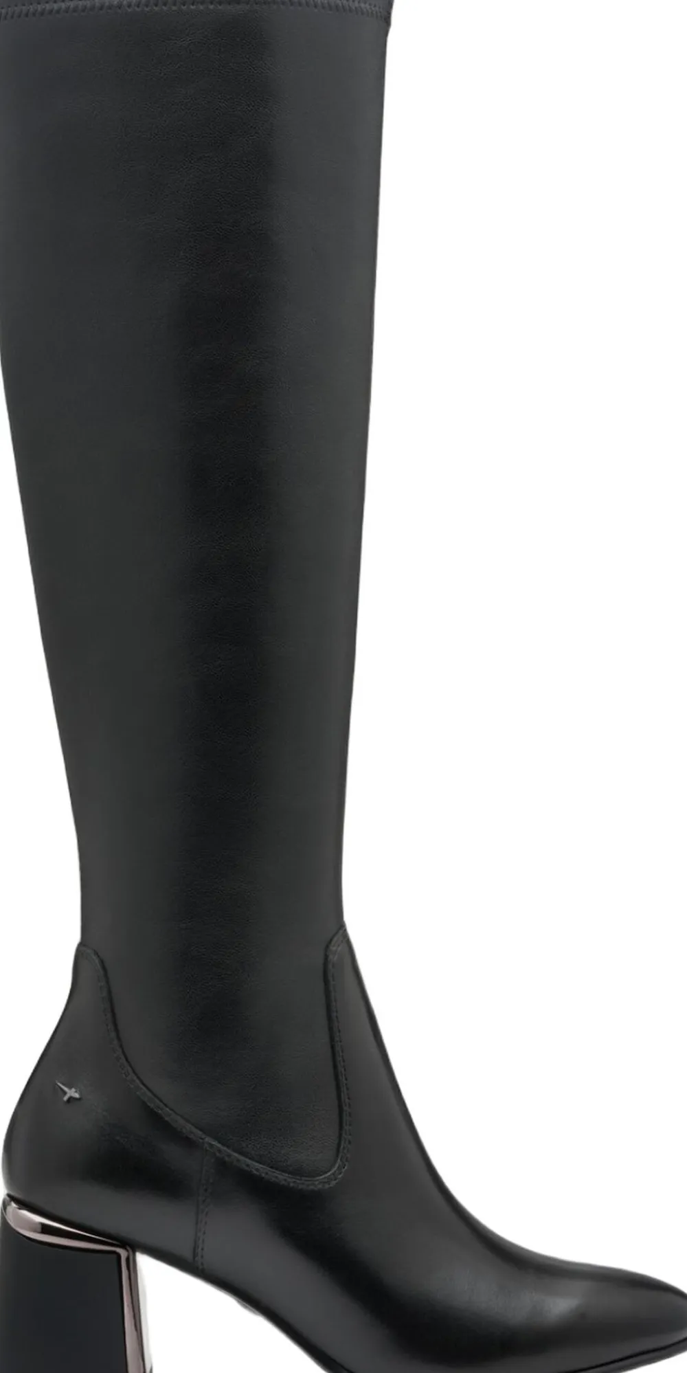 Langskaftet strechstøvle med sølvdetalje på hælen. Indvendig lynlås og antislide og antichok effekt i hælen. Skafthøjden er 40 cm og hælhøjden er 60 mm