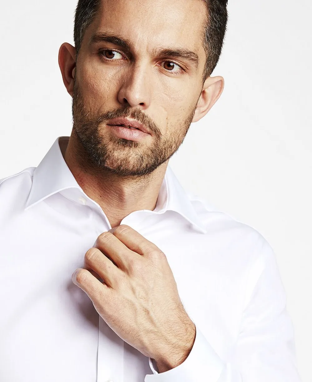 Lindbergh skjorte i 100 procent bomuld og vævet på en innovativ måde, der gør den fuldstændig uigennemsigtig, som f.eks. hvis du tatoveringer eller ikke vil bruge undertrøjen. Skjorten er krølfri, pletafvisende og anti-bakteriel.