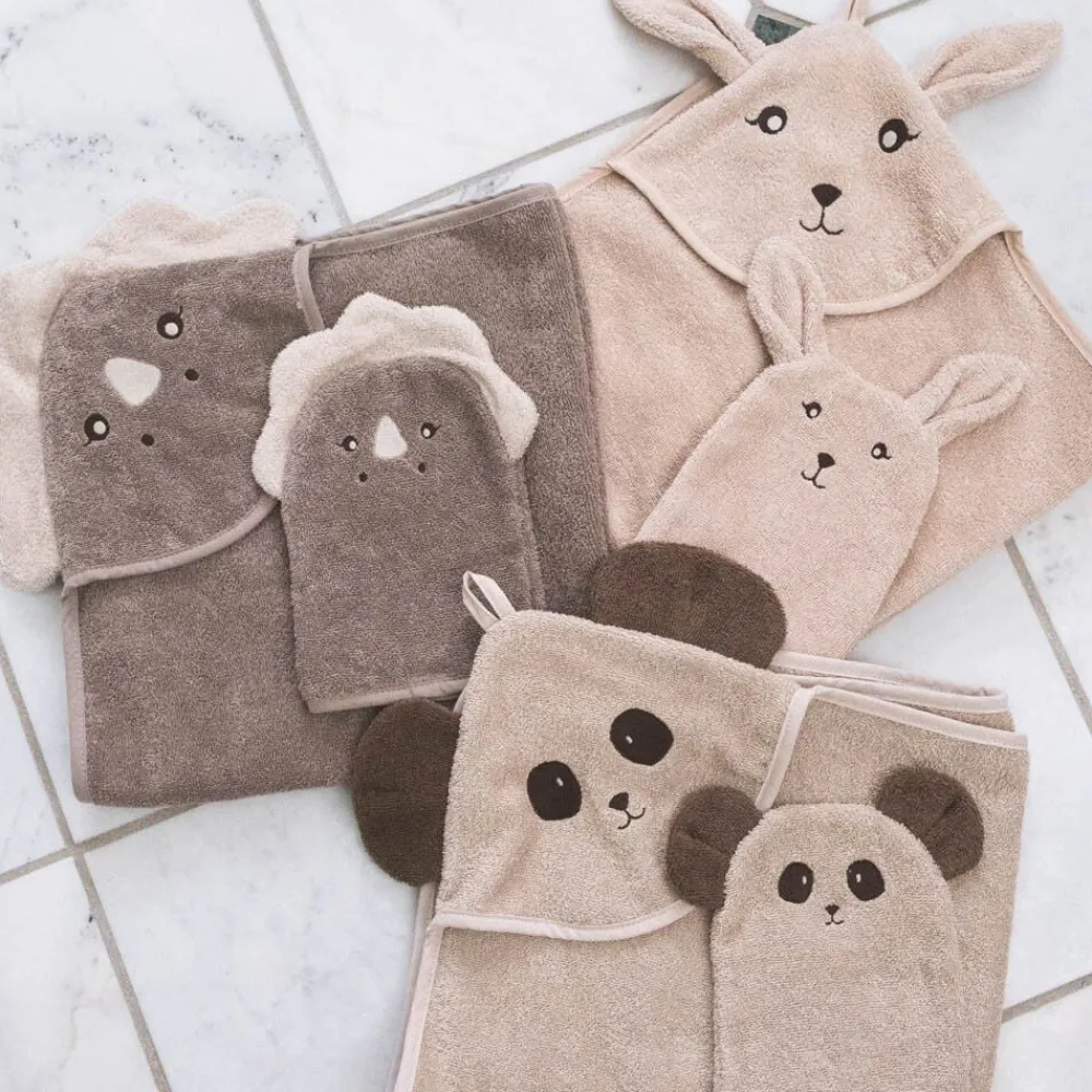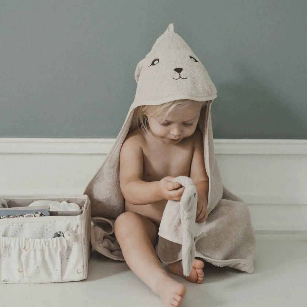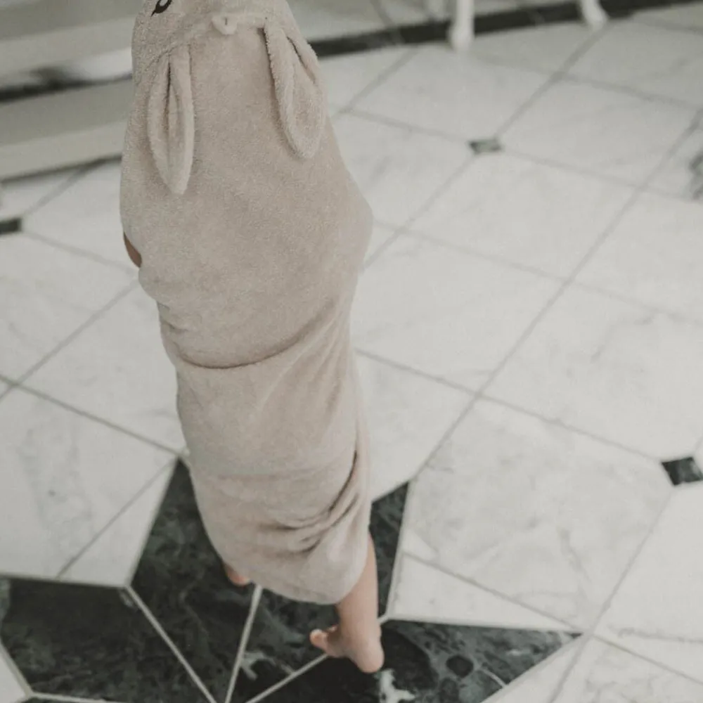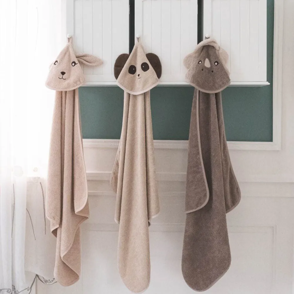 Et blødt dyreformet badehåndklæde er en dejlig og praktisk tilføjelse til ethvert barns badeværelsesrutine. Lavet af 100% blødt økologisk bomulds frotté. Dette badehåndklæde med hætte er designet til at holde de små behageligt varme efter badet. Badehåndklædet har store øre der gør badet til en leg og sjov at have på både før og efter. Mål: 70 x 70 cm