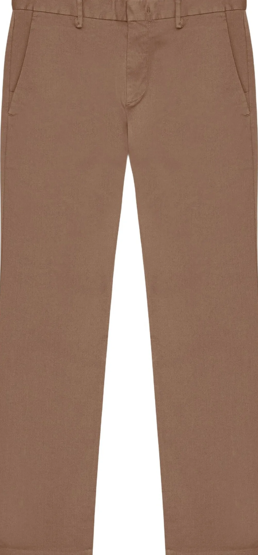 Theo er en chino i hjertet, men med de formelle elementer i en kjolebuks. Den er fremstillet i BCI-fremstillet børstet bomuld fra den italienske mølle Progetto Uno. Disse alsidige bukser med mellemhøj talje har en indsnævret pasform. Den er afsluttet med en skarp fold ved benet og usynlig oplægning