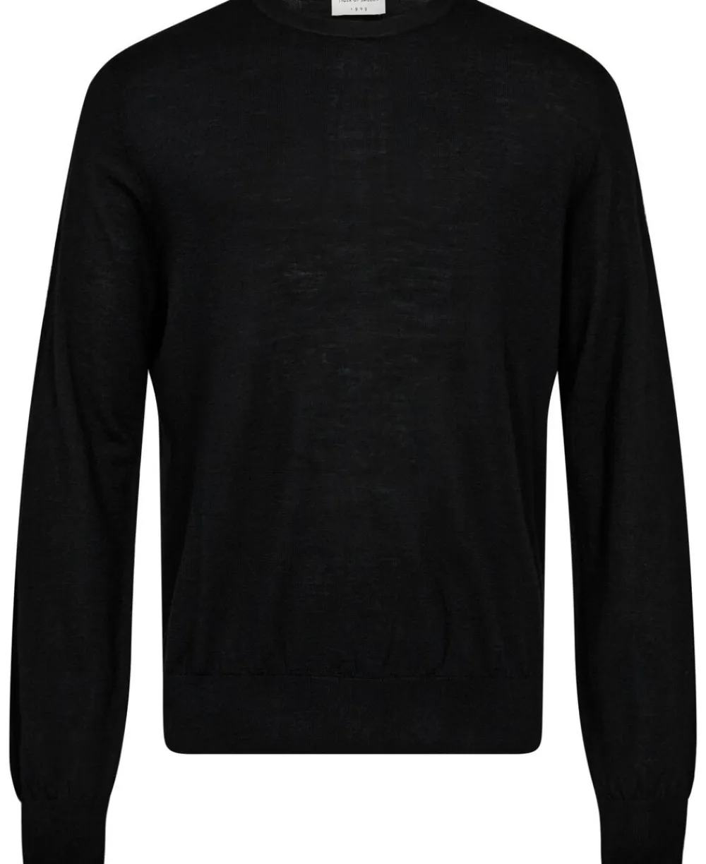 Connor er en slim-fit sweater med rund halsudskæring i ribkant. Sweateren har længde til hofterne og har franske skuldre med synlig formgivning. Looket fuldendes med ribkant ved ærmerne og forneden. Sweateren er lavet af merinould og fremstillet i Kina.