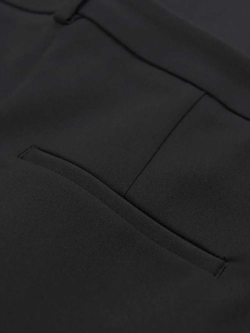 Bukser i en blanding af bomuldsstræk. Slank pasform med lige ben og stumpet længde. Mellemhøj talje med skrå lommer foran og kantede lommer bagpå. Fremstillet i Rumænien