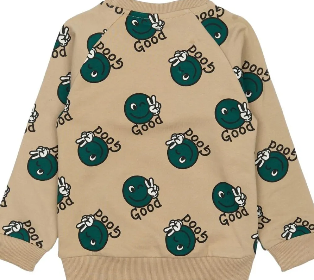 Charmerende babysweatshirt fra THE NEW siblings med all-over-print af en blinkende smiley og teksten “Good”. Denne sweatshirt er perfekt til både hverdagsbrug og hyggelige weekender. Kombiner den med de matchende TNSTPhil sweatpants for et afslappet look. – Normal pasform – Lange ærmer – Rund halsudskæring – AOP af smiley og teksten “Good” – Ribbede kanter ved halsudskæring, ærmer og bund – GOTS Organic certified by CU842535