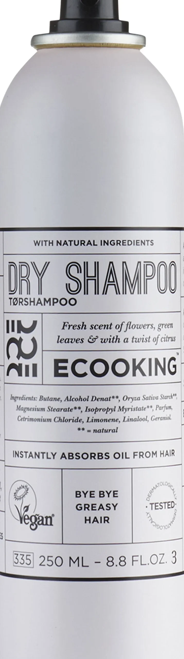En opfriskning til de hektiske morgener, som giver dit hår et voluminøst look. I en hektisk hverdag er hurtige løsninger guld værd. Tørshampoo er til de morgener, hvor du ikke når at vaske hår, men dit hår skriger på en opfriskning. Her fordeles blot tørshampooen i håret og så sørger dens indhold af naturlig risstivelse for at absorbere overskydende fedt uden at udtørre håret. Tørshampoo fjerner det glinsende look og får lynhurtigt dit hår til at se rent og friskt ud. Tørshampoo tilføjer også volumen til håret, giver dit hår et friskt udtryk og får håret til at dufte dejligt af blomster, grønne blade og et tvist af citrus. ANVENDELSE: Brug efter behov. Påfør i tørt og fedtet hår. Hold tørshampooen omkring 20 centimeter fra håret. Spray direkte ved hårrødderne. Ryst Tørshampoo grundigt, inden du fordeler den i håret. TIP: Brug dine fingerspidser til at massere Tørshampoo ind i hovedbunden. Dette hjælper ingredienserne til at absorbere olien. 100% Vegansk og dermatologisk testet.