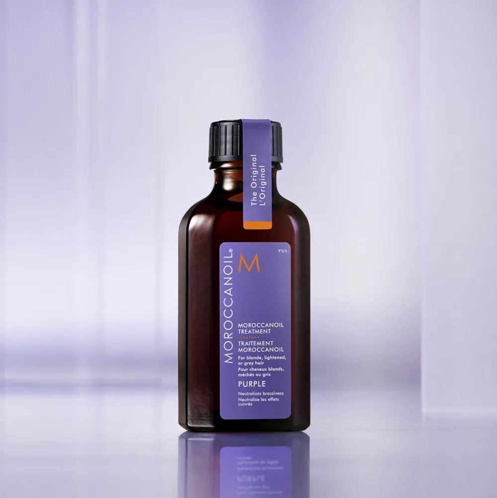Moroccanoil Treatment Purple er beriget med arganolie og violette pigmenter. Arganolien er rig på E-vitamin, essentielle fedtsyrer og antioxidanter, som tilfører pleje, fugt og næring. Den styrker håret, så det bliver mere modstandsdygtigt, fleksibelt og medgørligt. De violette pigmenter modvirker gyldne undertoner, så håret efterlades med en mere kold tone.