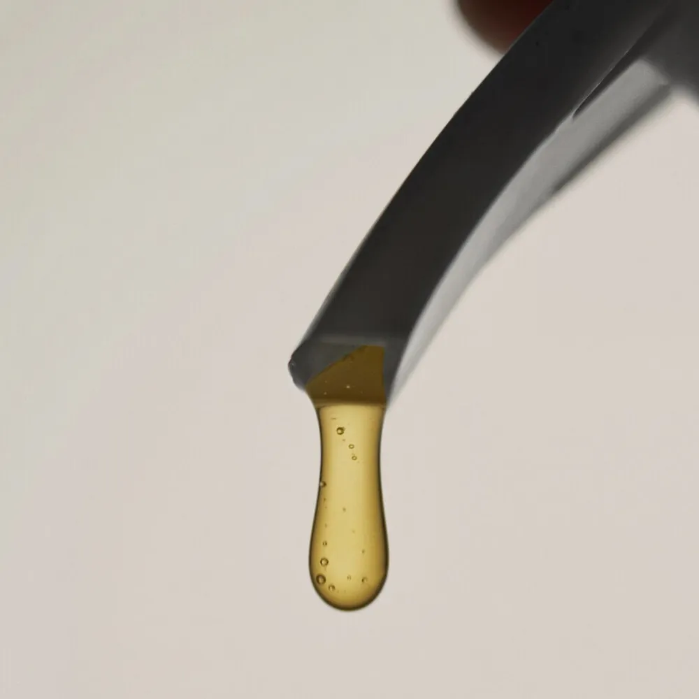 Sæben fa?s i en smuk glasflaske, der vil pynte pa? badeværelset eller i køkkenet.