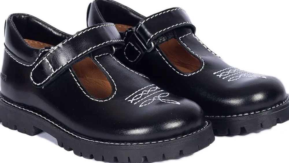 Tullesko med track-sål og dekorative western kontraststikninger.