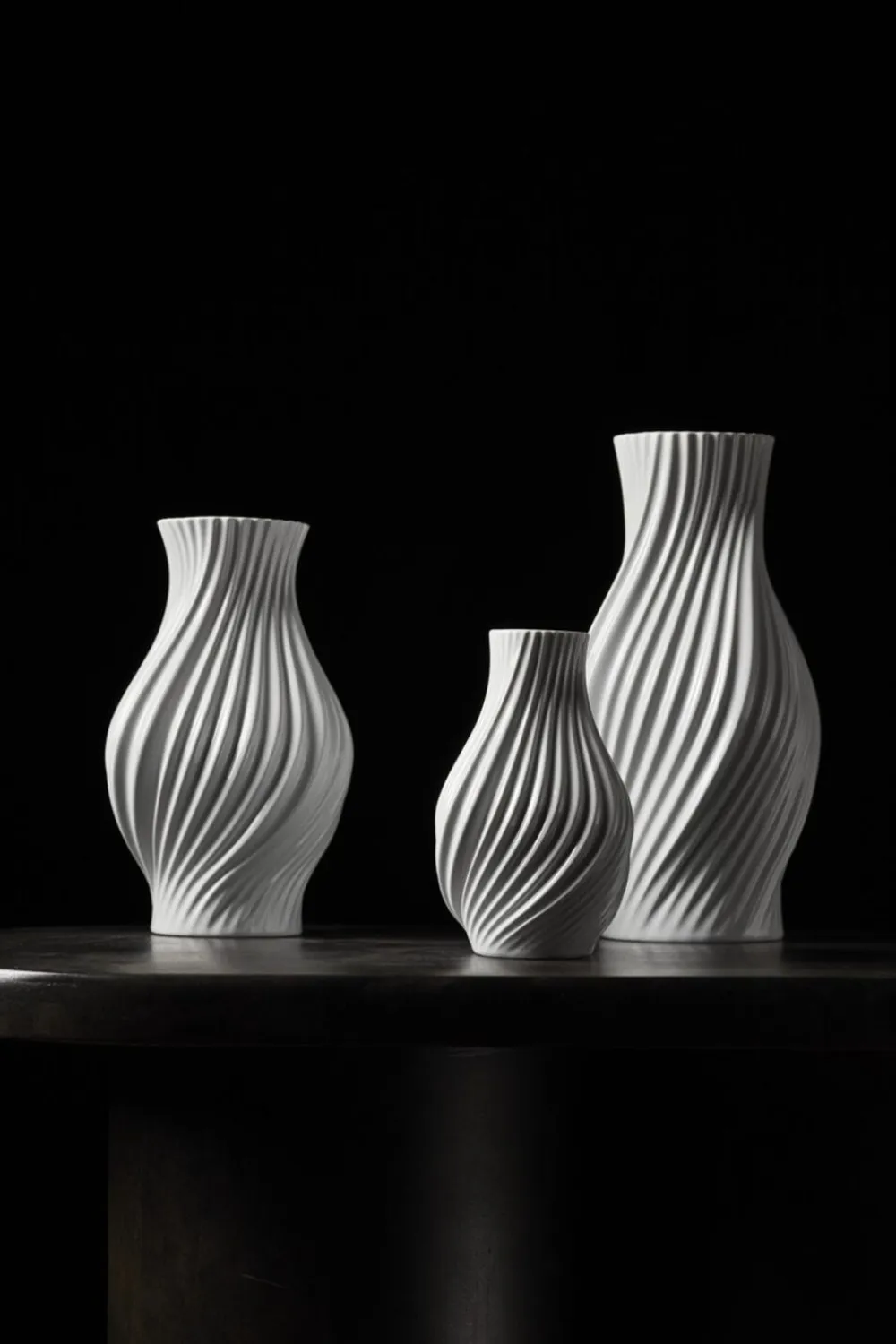 Et elegant møde mellem natur og kultur. Med Lyngby-seriens unikke Twist-vaser får du enkel, stilren og skulpturel porcelænsmagi, som vi kender det fra Lyngby Porcelæn, hvor arkivdesign, klassiske former og rendyrket æstetik udfoldes med i et formfuldendt designtwist med linjer, der inspirerer. Lyngby-designet er i dag veletableret som en sand klassiker i Lyngby Porcelæns sortiment alle dele med de inspirerende linjer, der karakteriserer Lyngby Porcelæns minimalistiske og stilfulde design og giver Lyngby-serien sit helt særlige udtryk. Med Twist tager Lyngby Porcelæn et par stilige sving ad helt nye designveje og giver dig en vase inspireret af de naturlige formationer, du finder i naturen barken på et træ, spiralformede galakser, svungne blomsterstængler og fortidsskabte formationer i landskabet. Ud over denne store vase på 31 cm i højden findes Twist-vaserne også i størrelser på 18 cm og 25 cm, der matcher resten af Lyngby-serien. Som samlet serie komplimenterer de naturligvis hinanden perfekt, men de kan sagtens stå alene som skulpturelle designelementer forskellige steder i indretningen. Uanset størrelse og placering vil de alle være et lille, mellem eller stort statement i hjemmet, og med årstidens grene eller buketter kommer deres dynamiske form måske endnu mere til sin ret. Det giver en skøn tilføjelse af en naturlig ro og harmoni, men uden at det på nogen måde overtager vasernes karakteristiske formsprog. De kommer selvfølgelig alle sammen med det ikoniske logo i bunden, der sikrer dig, at du har fat i det ægte vasedesign det fra Lyngby Porcelæn.
