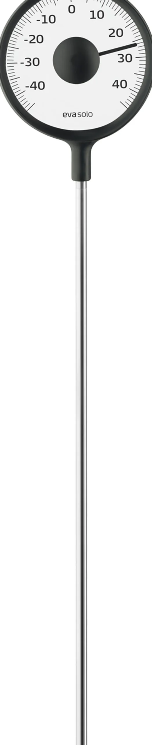 Udendørstermometer med spyd til have eller blomsterkrukke på altanen, så du altid kan holde styr på, hvor varmt der er. Termometret er let at aflæse og kan nemt flyttes derhen, hvor du ønsker at vide, hvad temperaturen er. Rengøres med opvredet klud. Fremstillet i rustfrit stål, kunststof og gummi. Mål: Ø: 11 x D: 3 cm / Spyd H: 90 cm.