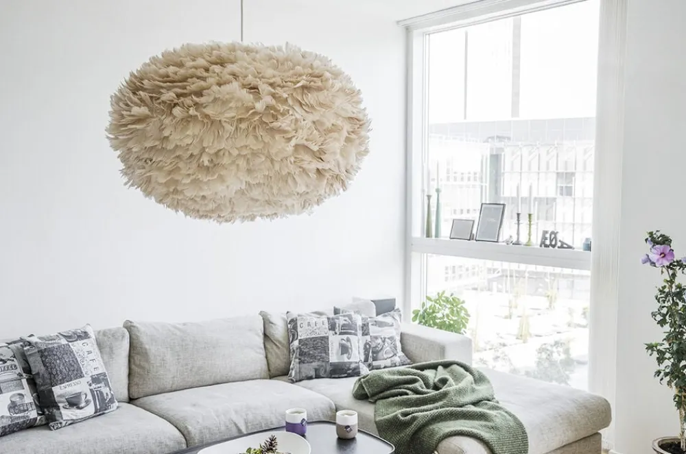 Umage Eos er lavet af naturlige gåsefjer der gør hver eneste Eos lampe unik. Umage Eos giver et blødt lys og er en elegant og fortryllende lampe, selv når den er slukket. Umage Eos findes i 4 størrelser, der hver især komplimenterer ethvert rum.