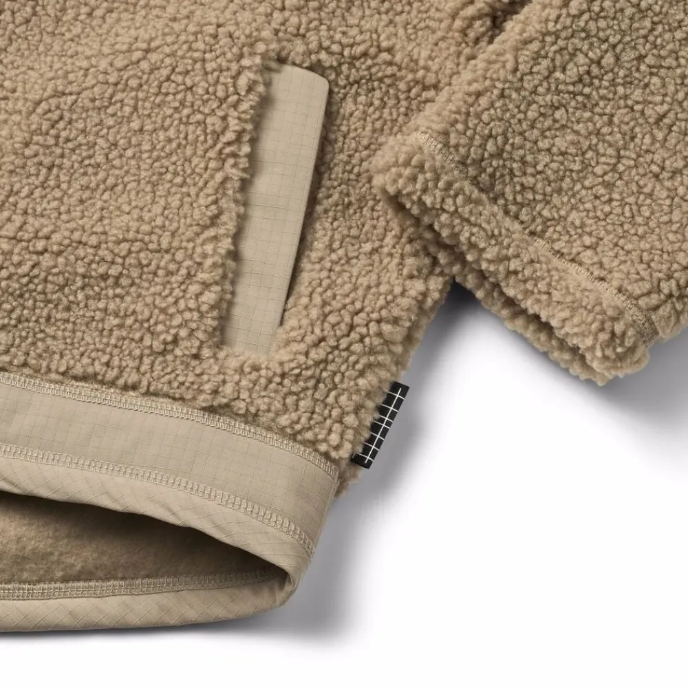 Fleecejakken til børn er designet med både komfort og funktion i fokus. Den har praktiske frontlommer og slidstærke detaljer, hvilket gør den ideel til leg og udforskning. Den løse pasform og høje krave sikrer bevægelsesfrihed, mens lynlåslukningen med hagebeskytter giver ekstra beskyttelse. Jakken skiller sig ud med sin længere bagdel, perfekt til udendørs eventyr.