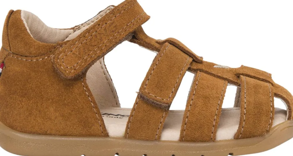 Lad dit barn træde ud i sit første sommereventyr med Vikings nye skindsandaler. Det er førsteklasses skindsandaler, der er specielt designet til at hjælpe barnet med at tage de første usikre skridt, på en tryg måde. De er håndlavede i Europa af lokale håndværkere i slidstærkt skind med alsidighed og komfort i højsædet. De har en justerbar og fleksibel pasform, et skindfor, som føles blødt mod huden, og en robust ydersål i gummi med et mønster, der giver et godt greb og fodfæste.