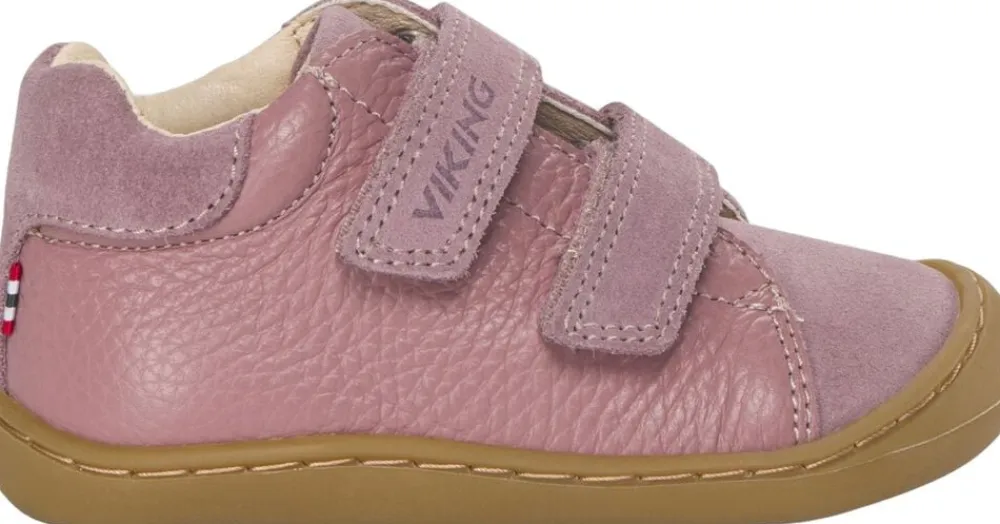 Lad dit barn tage sine første usikre skridt, helt trygt med Vikings nye skindsko. Disse perfekte “”sko til de første skridt”” er håndlavede i Europa af slidstærkt skind med alsidighed og komfort i højsædet. De har en tidløs, men moderne stil og er perfekte til daglige eventyr, hvor stabilitet og tåbeskyttelse er vigtig. Den solide ankelhøje profil giver god støtte, mens den robuste ydersål i gummi har et mønster, som sikrer et godt greb og fodfæste.